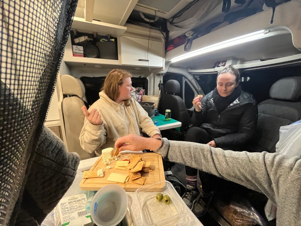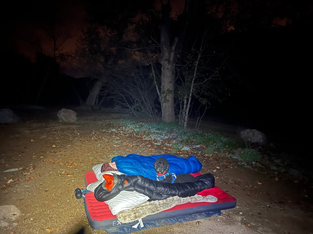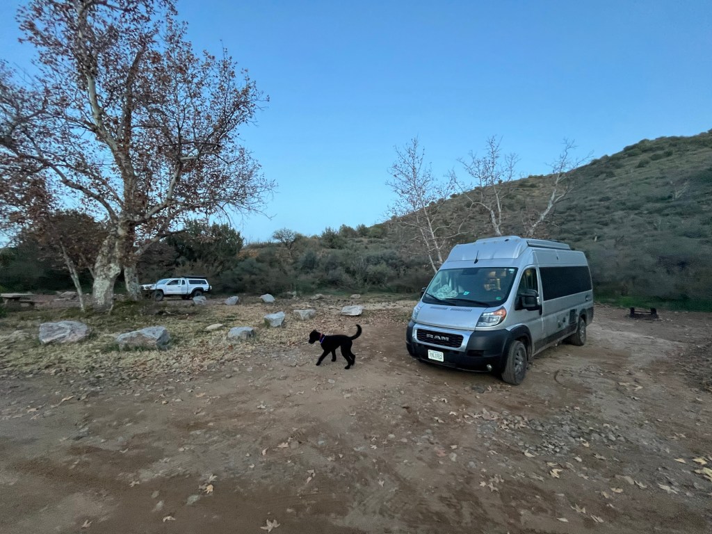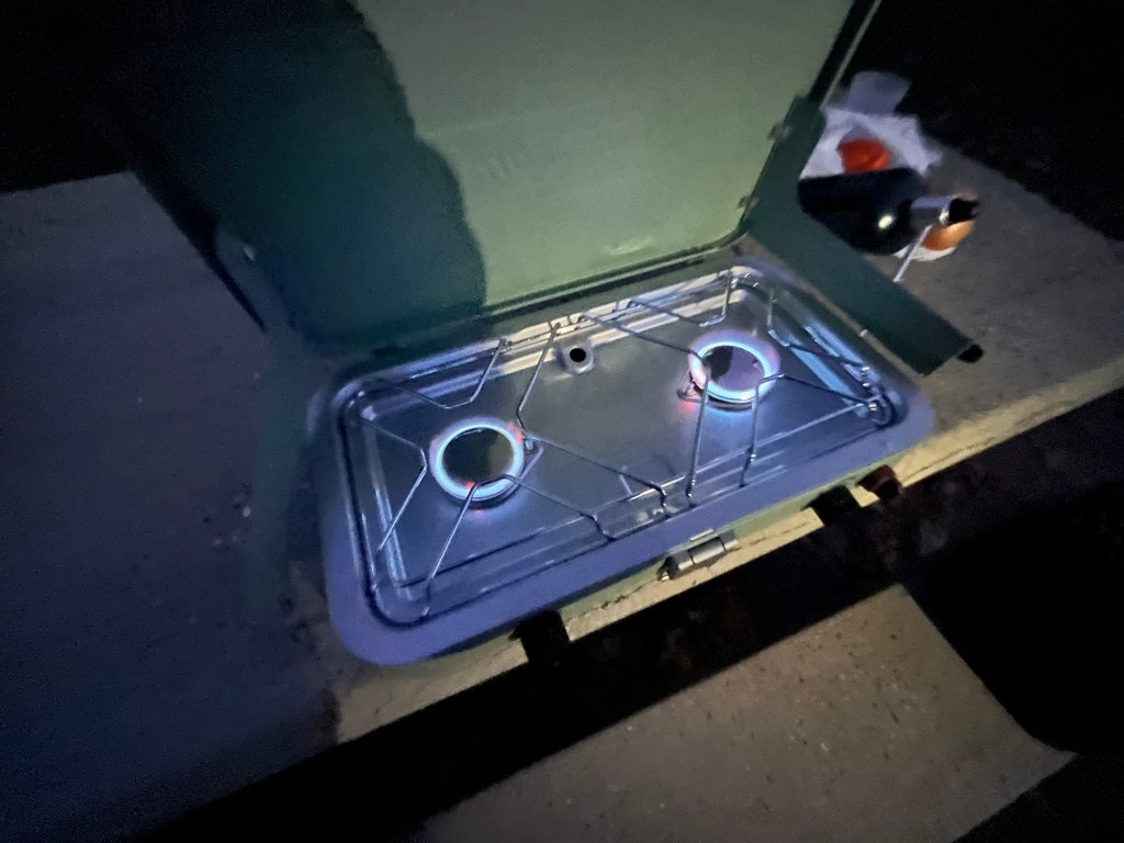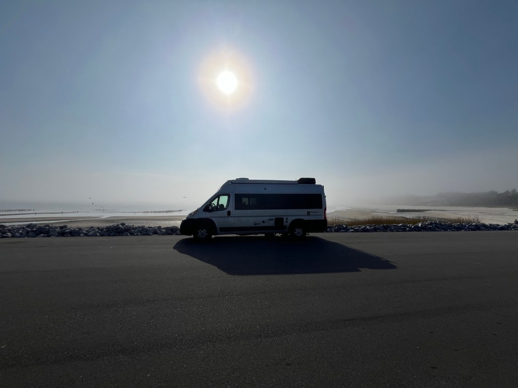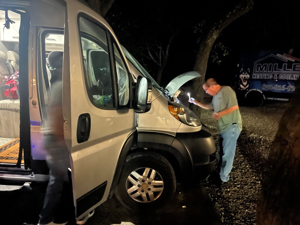 But the day was not over. Back in the van and eastward we went. We entered and left Alabama, the third state of the day, before cruising into Florida as the sun was setting. We made it to the campsite around 6:30 and after checking in (and letting the car sit for around 10 minutes with the windows closed) we noticed a strong rotten egg smell. As of writing this is still unresolved. We made friends with some neighbors at the RV park, decades more experienced automobile travelers than we are, who were kind enough to investigate. They suspect that it might be a dead animal in the dash. Uneasy about the diagnosis, as we were reluctantly accepting our smelly quarters for the evening, the propane alarm started going off, despite the windows and side door being open. Then it went off again. That was it. After two propane alarms plus the rotten egg smell we decided to go to walmart to get a second alarm. Maybe ours is broken. They were out of stock at walmart and it was right around midnight so we went with the nuclear option – we drove right to the fire station.